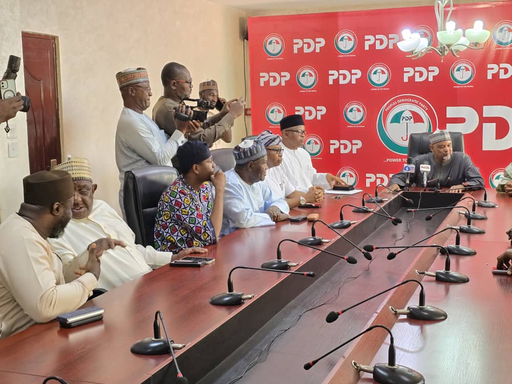 Bala Mohammed, governor of Bauchi and chairman of the PDP’s Governors’ Forum; Abba Moro, lawmaker representing Benue south and minority leader of the senate; and other party officials, were present during the press conference.