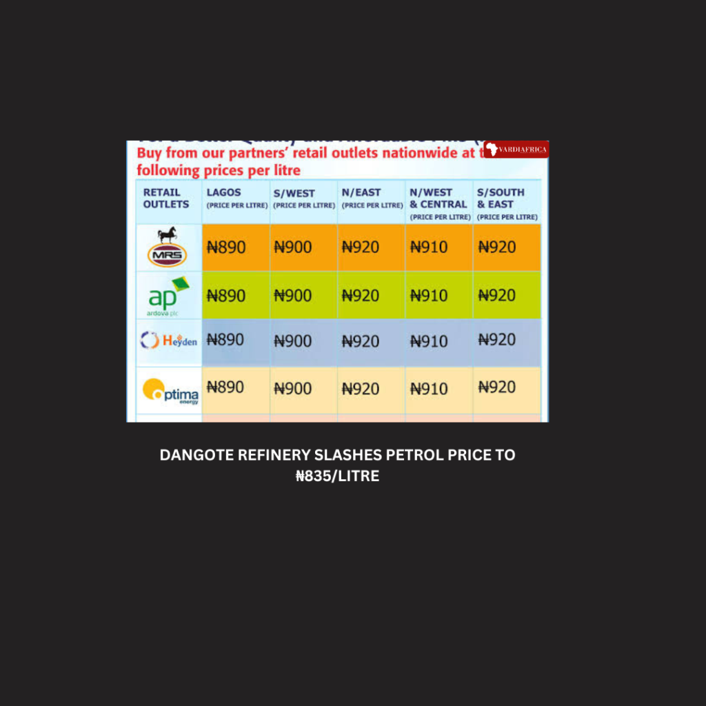 Dangote Refinery slashes petrol price to ₦835/litre