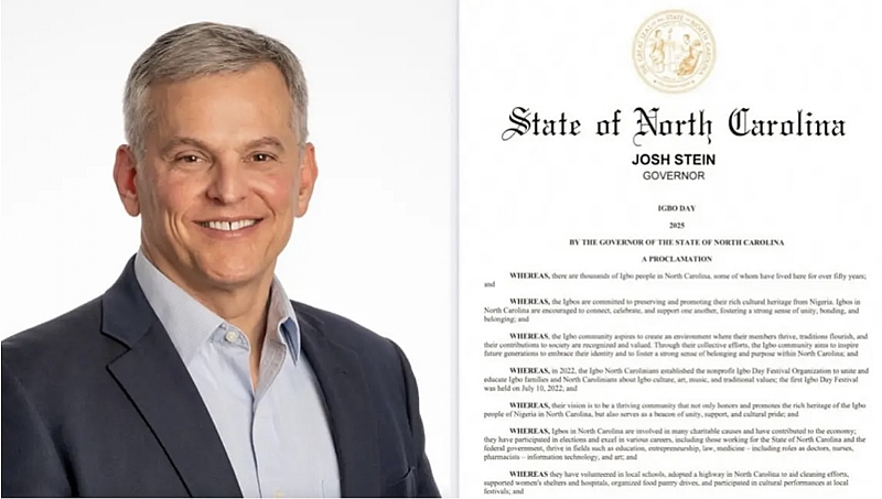 Governor Josh Stein of North Carolina has officially declared June 14, 2025, as “Igbo Day” across the state.