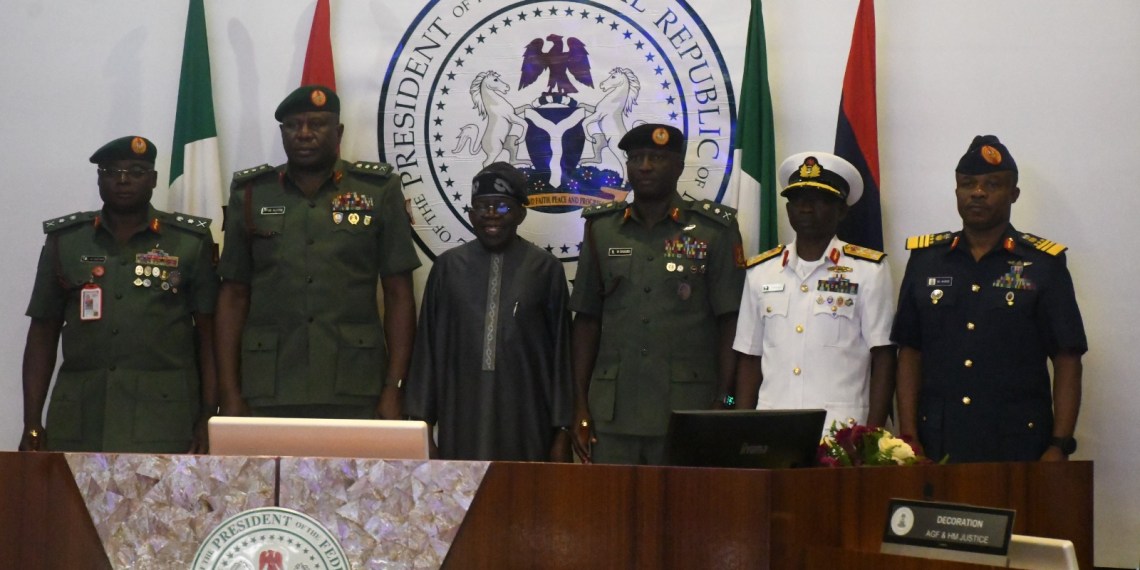 President Bola Tinubu has decorated the newly appointed service chiefs with their new ranks.