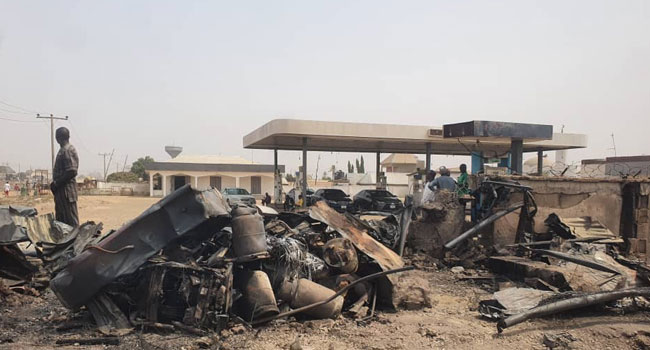 The explosion occurred around 11 p.m. on Saturday when a gas tanker was offloading at a local filling station.