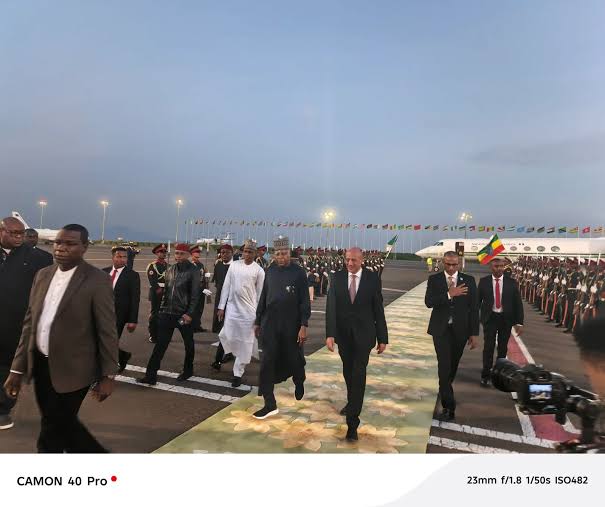 The Vice President’s aircraft touched down at Addis Ababa Bole International Airport at 15:26 GMT, where he was received by Ethiopia’s Deputy Prime Minister, Temesgen Tiruneh; the Chargé d’Affaires of the Nigerian Embassy, Amb. Nasir Aminu; Dr. Suleiman; and other top officials of the Nigerian mission.